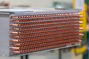 - Nortek Coil Product Manager, Tony Heald shows a coil fin front the fin press machine.